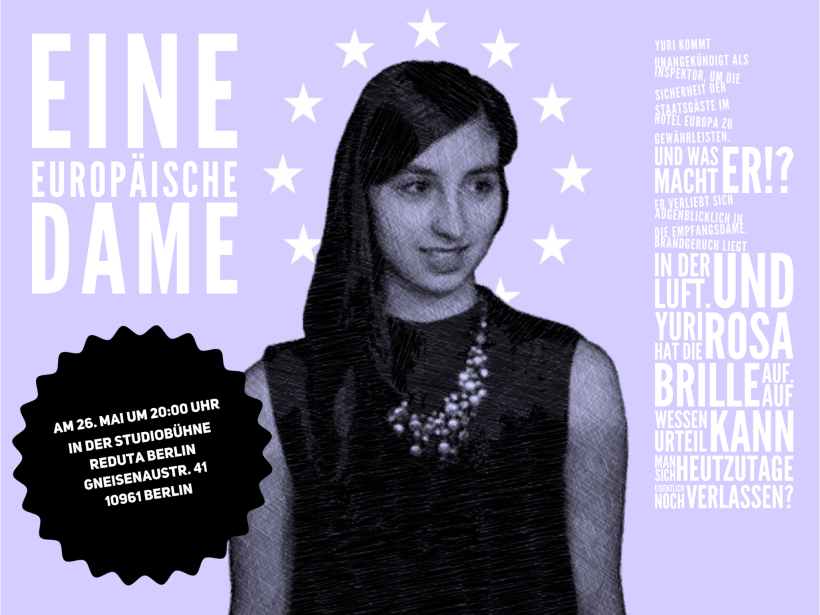 Das Stück „Eine Europäische Dame“: Juri kommt unangekündigt als Inspekteur, um die Sicherheit der Staatsgäste im Hotel Europa zu gewährleisten. Und was macht er?! Er verliebt sich augenblicklich in die Empfangsdame. Brandgeruch liegt in der Luft – und Juri hat die rosa Brille auf … Auf wessen Urteil kann man sich heutzutage eigentlich noch verlassen?